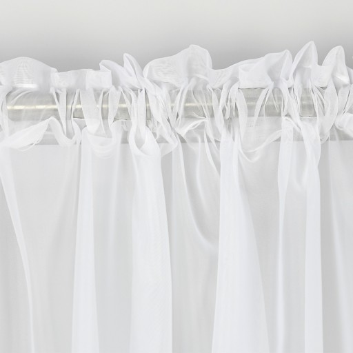 Firanka wykonana z najwyższej jakości delikatnej tkaniny woalowej, wykończona została podwinięciem.