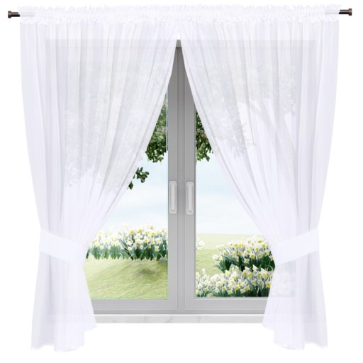 Firanka wykonana z najwyższej jakości delikatnej tkaniny woalowej, wykończona została podwinięciem.