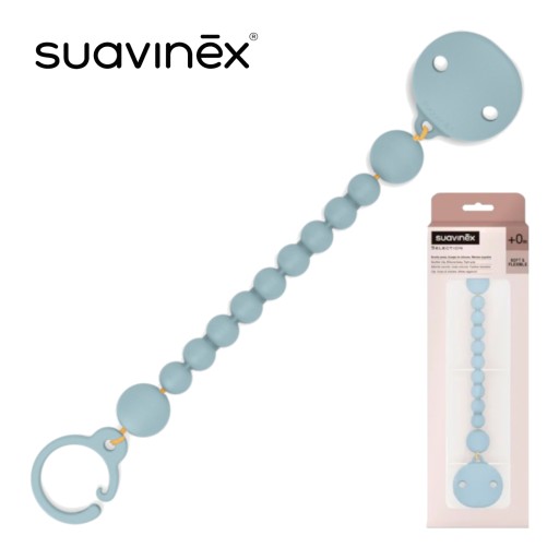 Klips Suavinex wykonany z miękkiego silikonu medycznego zabezpiecza smoczek przed zabrudzeniem i upadkiem, a dzięki lekkości i elastyczności idealnie sprawdza się w domu i w podróży.