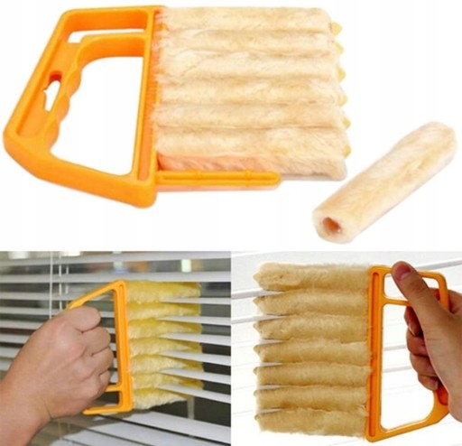 7 listew, można czyścić sześć żaluzji na raz Zaprojektowane zgodnie z kształtem dłoni, zwiększają chwyt szczotki w dłoniach, łatwe sterowanie szczotką przy bliskim kontakcie ostrza żaluzji, w porównaniu z ręcznikiem.