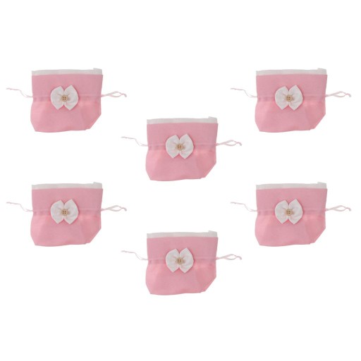 2x6 Sztuk Piękne Bawełniane Woreczki Ze Sznurkiem Bowknot Decor Torby Na Cukierki Różowe