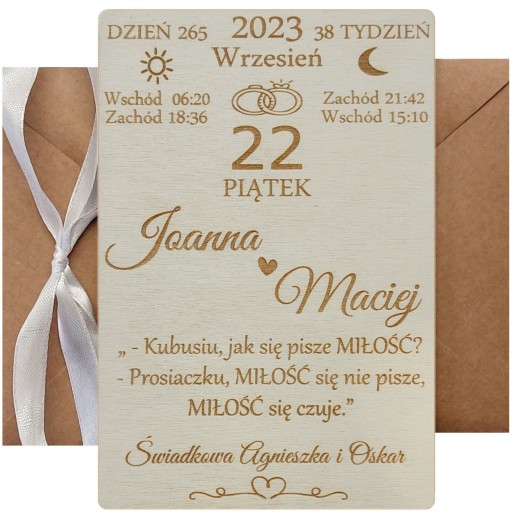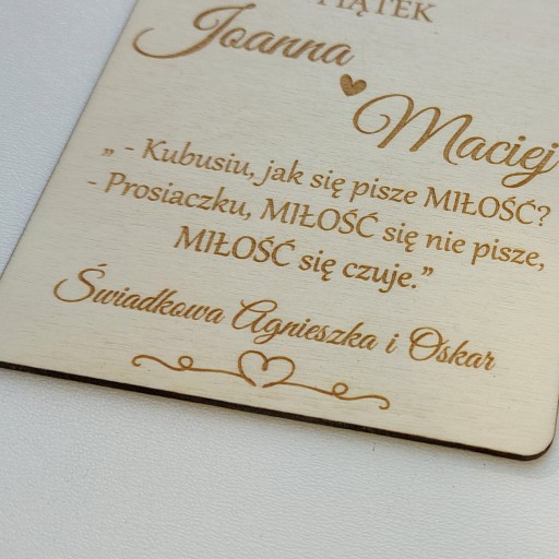 DREWNIANA PAMIĄTKA - KARTKA NA ŚLUB - PREZENT NA WESELE GRAWER