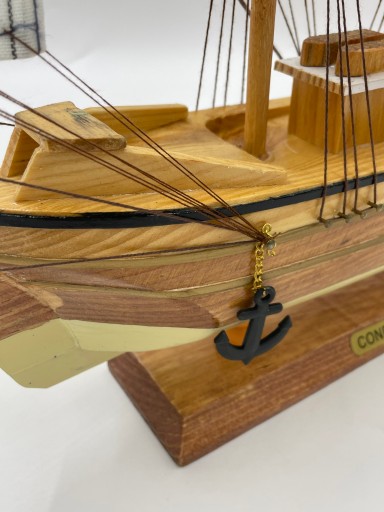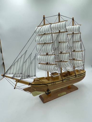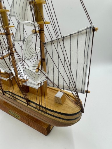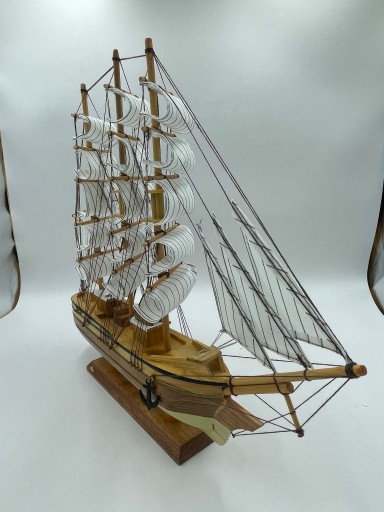 Nietuzinkowy ręczne wykonany model żaglowca ,zbudowany z drewna ,żagle wykonane z płótna , dodatkowo model posiada olinowanie.