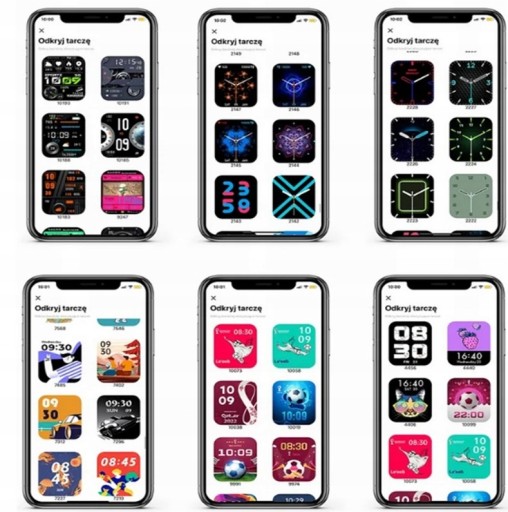 Zegarek posiada szeroki wybór twarzy - 250 opcji, które sprawią, że nigdy nie będziesz się nudzić wyglądem swojego urządzenia. Dzięki dedykowanej aplikacji łatwo i szybko wybierzesz jedną z tarcz, która idealnie oddaje Twój styl. Dodatkowo oferuje pięć różnych trybów menu, które pozwalają jeszcze bardziej spersonalizować nasz smartwatch do indywidualnego stylu użytkownika.