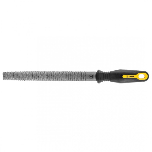Pilnik do drewna TOPEX (nr ref. 06A832) o długości 200 mm i półokrągłym przekroju. Przeznaczony do szlifowania drewna. Wykonany z wysokiej jakości stali T12. Ergonomiczny uchwyt pokryty antypoślizgowym materiałem zapewnia wygodę i bezpieczeństwo podczas pracy. Marka TOPEX skierowana jest do majsterkowiczów.