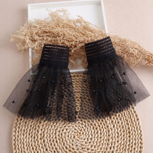 Damski sweter z mankietami imitującymi rękawy, mankiety, koronkowe, plisowane ocieplacze na nadgarstki