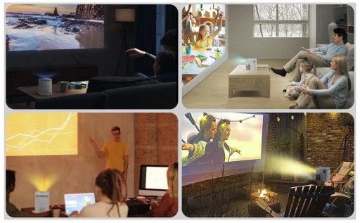 Mały i lekki projektor nie zajmuje dużo miejsca w pomieszczeniach i jest szeroko stosowany w sypialniach, salonach, salach konferencyjnych. Zaleca się stosowanie w nocy lub w zaciemnieniu, ponieważ im ciemniejsze światło, tym lepszy efekt projekcji.