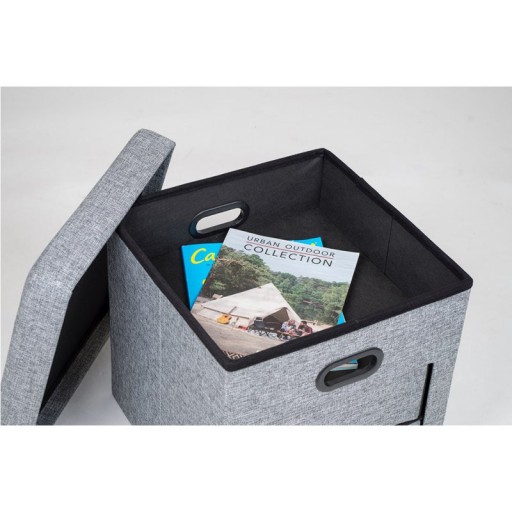 Wygodna, praktyczna i elegancka pufa w kształcie sześcianu z 2 szufladami. Wykonana z poliestru Oxford o wyglądzie lnu w szarym kolorze. Siedzisko wytrzymuje maksymalne obciążenie do 100kg. Wyposażona jest w 3 pojemne schowki (2 szuflady, oraz jeden otwierany od góry), uchwyt do wygodnego przenoszenia. Lekka i kompaktowa, po złożeniu zajmuje niewiele miejsca.