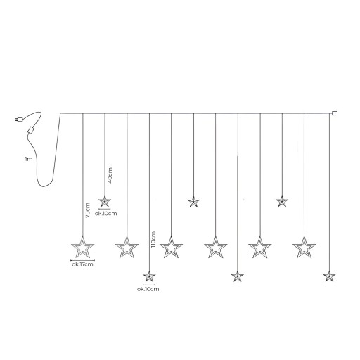 ⭐️ KURTYNA ŚWIETLNA LED GWIAZDKI ⭐️ORAZ 2,8 M ODCINKA