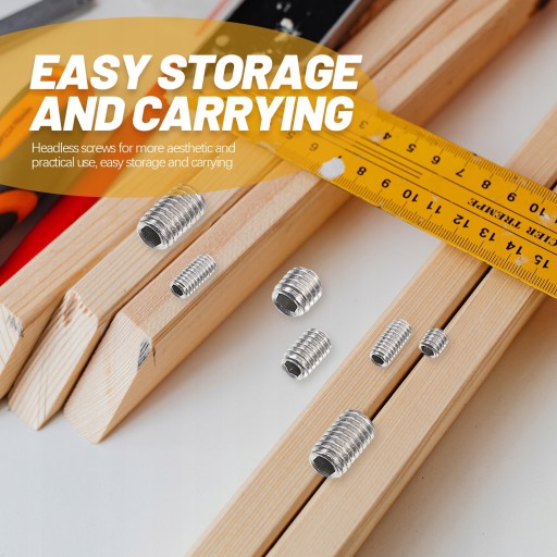 Śruby bez łba dla bardziej estetycznego i praktycznego zastosowania, łatwego przechowywania i przenoszenia.