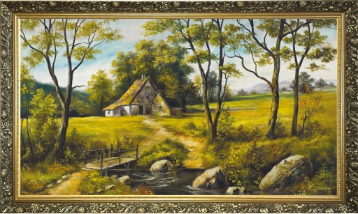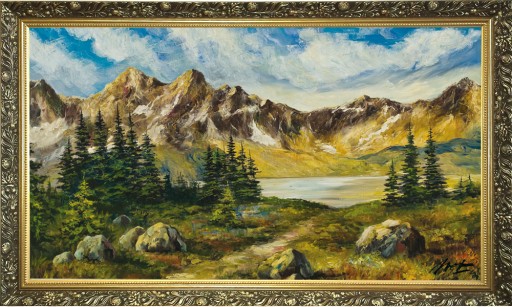 Obrazy oprawiamy w ramę wykonaną przez naszą firmę z drzewa sosnowego bezsęcznego wysokiego gatunku, szerokość ramy mierzona od przodu obrazu wynosi:60[mm] a grubość około 36 [mm].