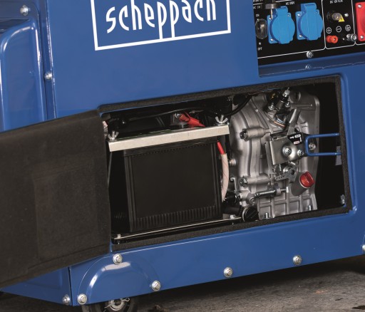 Agregat prądotwórczy z silnikiem diesla Scheppach SG5200D o maksymalnej mocy silnika 7,7 KM wyposażony w AVR