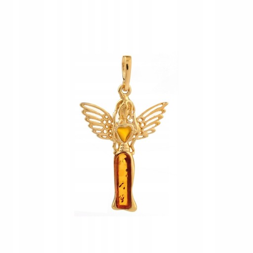⭐️SREBRO POZŁACANE ANIOŁEK z KONIAKOWYM NATURALNYM BURSZTYNEM
