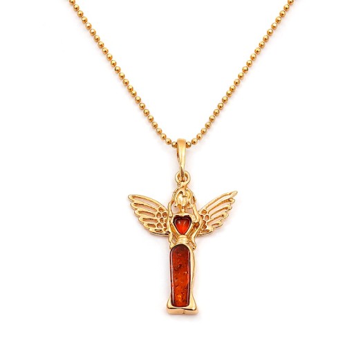 ЗОЛОТОЙ КУЛОН-АНГЕЛ С ЯНТАРЕМ
