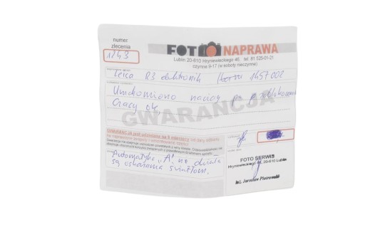 Z tej przyczyny aparat wystawiony w dziale Uszkodzone