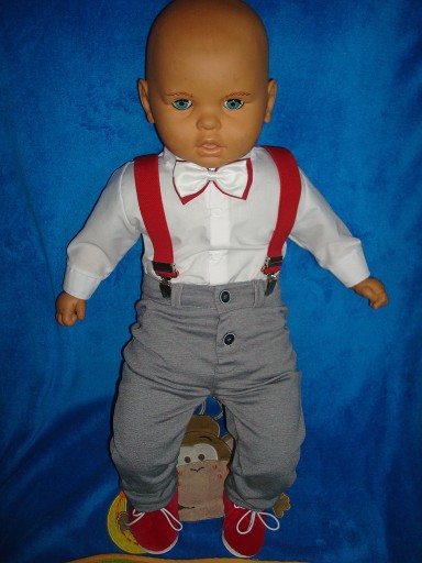 - KOSZULO-BODY BIAŁE W CZERWONO-NIEBIESKIE ZNACZKI ZAPINANE NA NAPKI NA DŁUGI RĘKAWEK