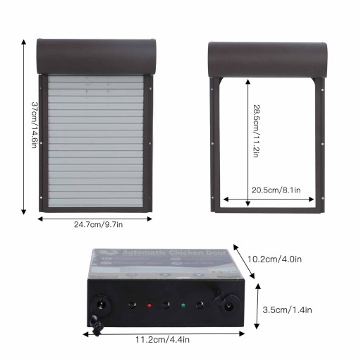 Rozmiar drzwi kurnika (po otwarciu): Ok. 28,5 x 20,5 cm / 11,2 x 8,1 cala