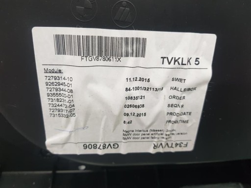ОБИВКА ДВЕРИ ПЕРЕДНЕЙ СПРАВА, BMW 5 GT