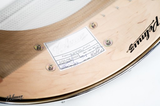 Polmuz podobnie jak najwyższe serie czołowych producentów jest traktowany indywidualnie, oznacza to,że nie może być mowy o żadnym uszczerbku czy nieprawidłowości zestawu. Każdy element perkusji po rozpakowaniu poddawany jest pieczołowitym oględzinom oraz sprawdzany czujnym, lutniczym okiem. Staramy się aby Polmuz zapisał się w świadomości jako produkt premium, wszystkie krawędzie korpusów muszą być idealnie równe i gładkie a dodatkowo są woskowane dla uzyskania jeszcze bogatszego odczucia profesjonalizmu i komfortu. Jak dobrze wiemy idealnie gładka krawędź wyzwala radość i szczęście w trakcie tradycyjnego obrzędu jakim jest przesuwanie dłoni po krawędzi przed założeniem nowego naciągu, nie mówiąc już o łatwości strojenia bębna oraz idealnym brzmieniu korpusu. Dodatkowo sprawdzany jest cały osprzęt bębnów ponieważ nie ma nic przyjemniejszego jak miękko wkręcające się śruby w idealnie dopasowane lugi. Po tak solidnej kontroli jakości poszczególne elementy zestawu zyskują indywidualną wlepkę z numerem seryjnym, datą oraz odręcznym podpisem potwierdzającym wysoką jakość bębna.W przypadku wykrycia wady czy nieprawidłowości korpus zostaje wykonany na nowo.