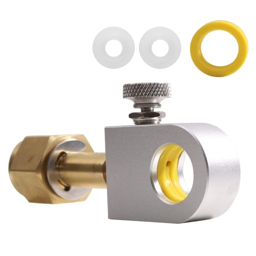Wysoka jakość - ten adapter szybkiego napełniania wykonany jest z wysokiej jakości materiałów aluminiowych i miedzianych, mocnych i trwałych, odpornych na zużycie i wysokie ciśnienie. Uszczelka O-ring może być również używana jako zamienna tarcza adaptera do napełniania butli CO2, a także może zastąpić tarczę w automacie do napojów gazowanych (terra/typ).