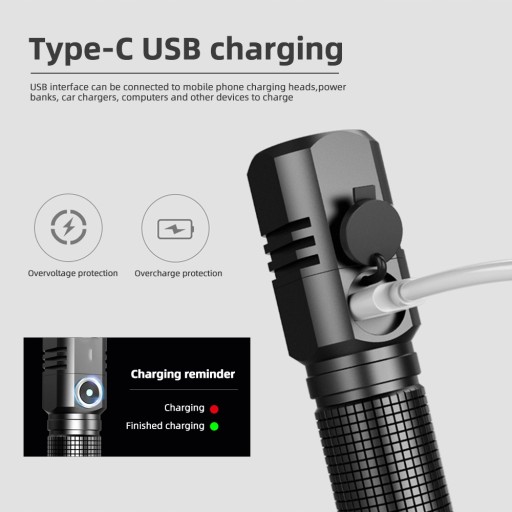 5. Metoda ładowania USB, USB typu C do komputera USB, USB samochodu, wtyczka ładowania USB, ładowanie latarki.