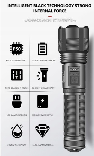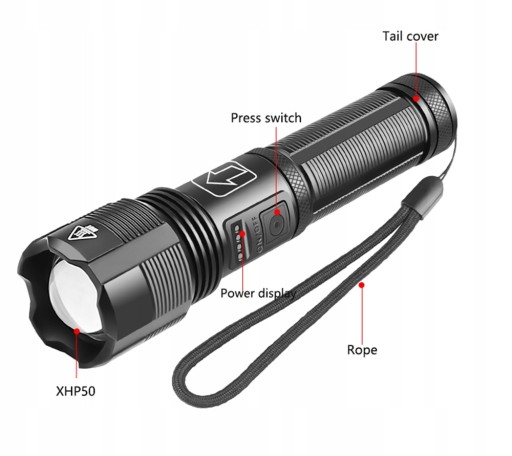 Odp.: 1x latarka LED 1x kabel ładujący USB