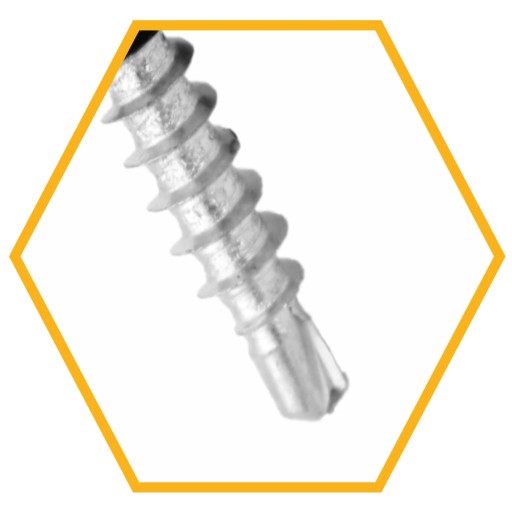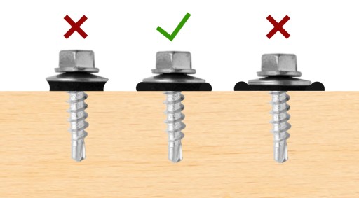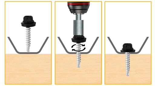 - Końcówka samowiercąca pozwala przewiercić blachę i przymocować ją do podłoża drewnianego.