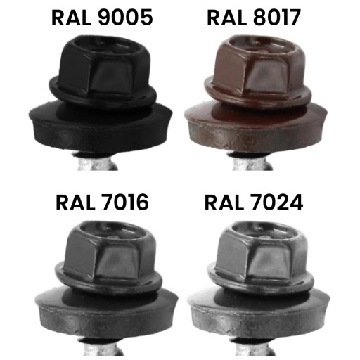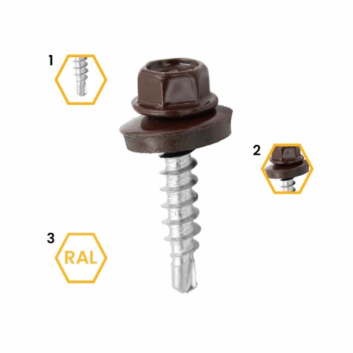 Wkręty farmerskie - samowiercące z podkładką EPDM wykonane w powłoce cynkowej do mocowania blachy, blachodachówek i obróbek blacharskich do podłoża drewnianego. Wkręty typu farmer lakierowane są wg. palety kolorów RAL
