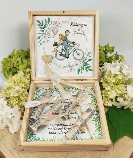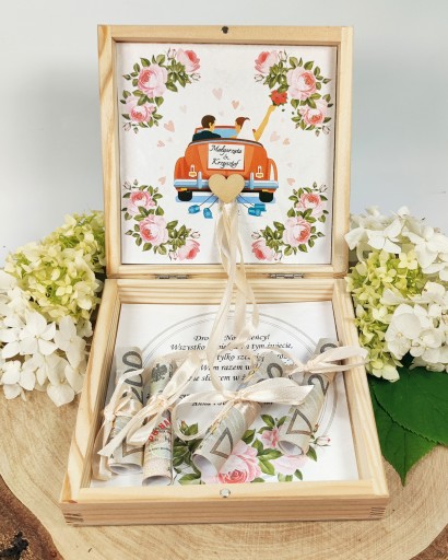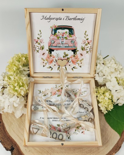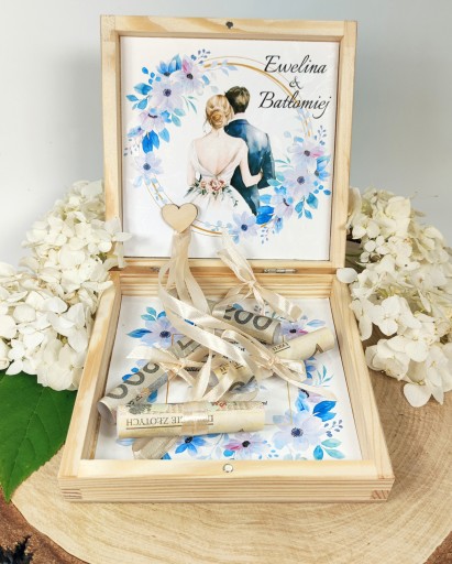PUDEŁKO NA PIENIĄDZE to nietuzinkowa i elegancka kartka, ale również pamiątka dla Państwa Młodych.