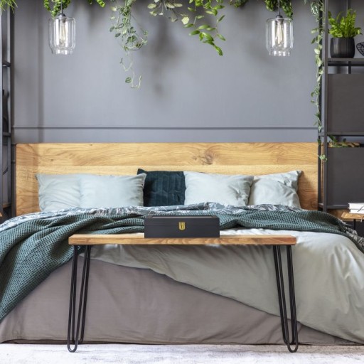 - Eleganckie połączenie czarnego MDF i złotego zapięcia