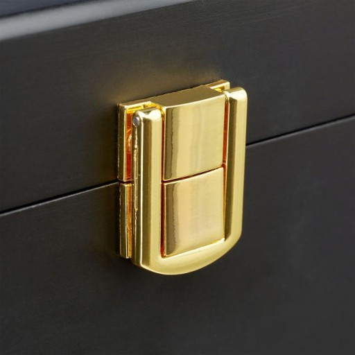 To pudełko na zegarek łączy w sobie funkcjonalność i styl oraz zachwyca klasycznym designem wykonanym z lakierowanej na czarno płyty MDF i złotego metalowego zamka. Eleganckie pudełko na zegarki ze szklanym okienkiem oferuje miejsce na 12 klasycznych zegarków naręcznych. Dzięki miękkim aksamitnym poduszkom zegarki są chronione przed zarysowaniami i schludnie przechowywane. Pudełko na biżuterię do zegarków chroni również Twoje zegarki przed kurzem. Pudełko do przechowywania zegarków to świetny pomysł na prezent na różne okazje.