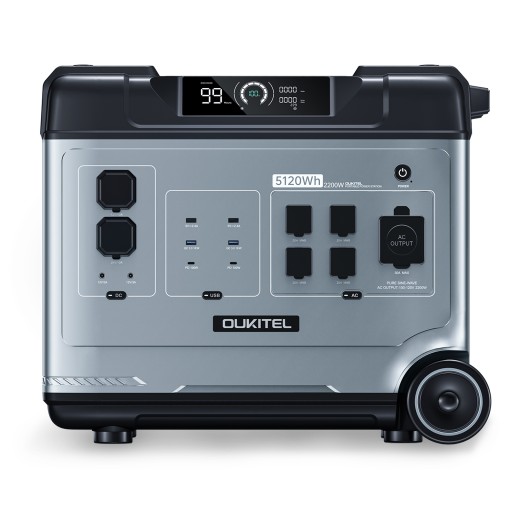 2200 W 5120 Wh Pojemność: Przenośna elektrownia o pojemności 2200 W 5120 Wh zapewnia źródło zasilania o dużej pojemności dla Twoich urządzeń, umożliwiając pozostawanie w kontakcie i zasilanie przez dłuższy czas.