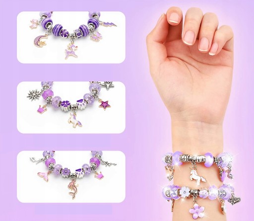 Prawie każda dziewczynka uwielbia błyskotki, koralki, zawieszki. Prezentowany zestaw do tworzenia bransoletek to dokonały prezent dla małej księżniczki, która zamieni w prawdziwą kreatorkę mody. Dzięki koralikom dziewczynki pobudzają swoją wyobraźnię i tworzą własnoręczną biżuterię.