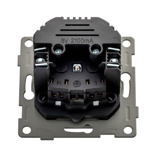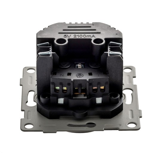 POJEDYNCZE GNIAZDKO Z UZIEMIENIEM ORAZ GNAZDEM USB i USB typu, CZARNE, PODTYNKOWE, DO RAMKI.