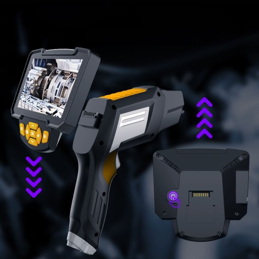 Endoskop SPU-E03_0050 został wyposażony w ekran o średnicy 4,3” zbudowany w taki sposób byś bez problemu mógł odłączyć go od uchwytu. Natomiast kamera została wyposażona w 2 obiektywy. Jeden znajdujący się z przodu kamery i jeden na górze. Kamera została wyposażona w 6 świateł LED, których moc możesz ustawić na jeden z trybów: 100%, 80%, 60%. Dodatkowo do kamery zostały dołączone 2 wymienne końcówki (Hak i Magnes). Dzięki nim będziesz w stanie np. wyłowić swój ulubiony pierścionek z rury odprowadzającej wodę. Kamera ma możliwość ustawienia zooma na jednym z predefiniowanych profili: 1x, 1.3x, 1.5x.