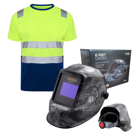 Wysokiej jakości przyłbica spawalnicza, samozaciemniająca JACKSON FEET UNDER 47100 + gratis koszulka ostrzegawcza JACSKON