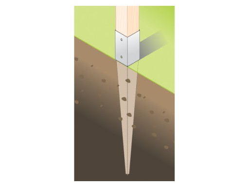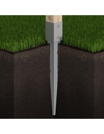 Podstawa słupa PSG umożliwia montaż elementów drewnianych w glebie oraz zapewnia odpowiednią dylatację drewna do podłoża.