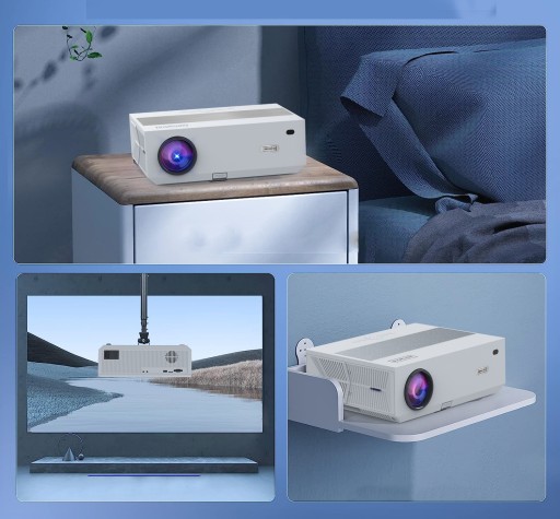 Projektor posiada funkcję wyświetlania obrazu 360, dzięki czemu możesz regulować kąt obrazu i go dowolnie obracać o 90 stopni. W ten sposób możesz na przykład zamontować projektor do góry nogami do sufitu i wyświetlać obraz w wygodny dla Ciebie sposób. W tym projektorze dodatkowo możesz cyfrowo dostosować kąt wyświetlania obrazu dzięki czemu może stać on nawet bokiem do ściany, a obraz wyświetlać nadal na wprost (Korekcja Keystone 4D).
