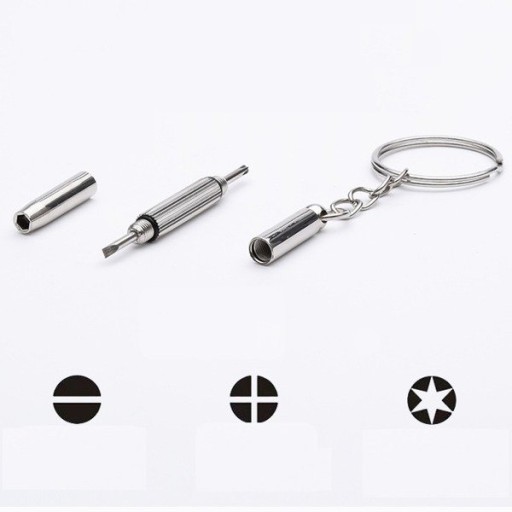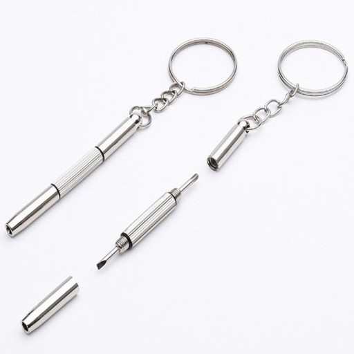 Bardzo praktyczny brelok 3 w 1 posiada szeroki zakres zastosowań. Po rozkręceniu otrzymamy mini śrubokręt płaski lub krzyżakowy i klucz nasadowy. Wykorzystany może być jako narzędzie do naprawy lub dokręcenia okularów, laptopa, telefonu, zegarka.