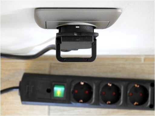 Przedłużacz jest również przystosowany do montażu, co oznacza, że możesz go powiesić na ścianie, pod blatem biurka lub w dowolnym innym miejscu. Dodatkowo posiada zwiększoną ochronę styków - czerwone zaślepki w gniazdach.