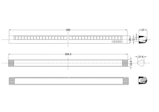- Wymiary (szer. x wys. x głęb.): 390x25x27 mm