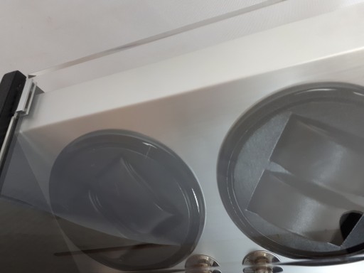 - produkt powystawowy, pochodzi z ekspozycji sklepowej posiada drobne ryski i otarcia na pokrywie z plexi (zdjęcia) (wersja ze skórzanym obiciem poduszek na zegarki)