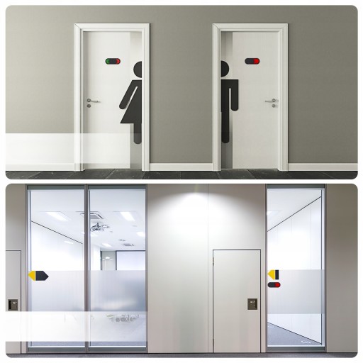 Idealne do stosowania w toaletach, biurach i salach konferencyjnych. Za pomocą jednego przesunięcia wskaźnika możesz łatwo określić, czy pomieszczenie jest wolne, czy zajęte.