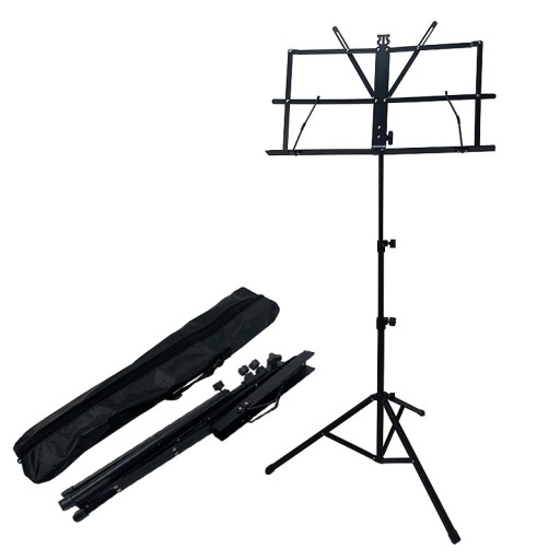 Pozwala na używanie stojaka zarówno stojąc, jak i siedząc. można położyć stojak nawet na stole (ustawiając statyw na najniższej wysokości). dodatkowo można regulować kąt nachylenia pulpitu, a regulowane czółka zapobiegają zamykaniu się nut.