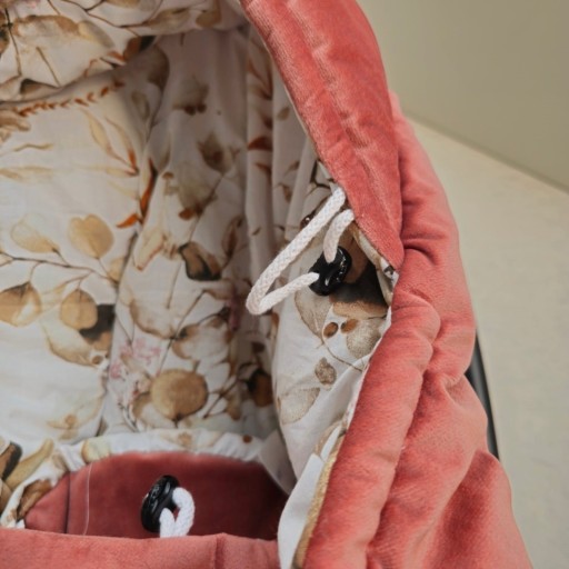 Śpiworek ma wszytą grubą , puszystą otulinę silikonowa ,bezpieczna i idealną dla maluszków( posiada odpowiednie atest) . Otulacz jest bardzo ciepły odpowiedni na zimę , zdecydowanie cieplejszy niż tradycyjny kocyk do fotelików.