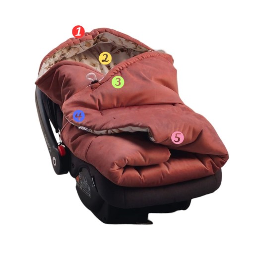 Nasz otulacz jest uniwersalny i pasuje do każdego fotelika .Ma wszyte dwa zamki z podwójnym suwakiem , który można dowolnie regulować pod system pasów.