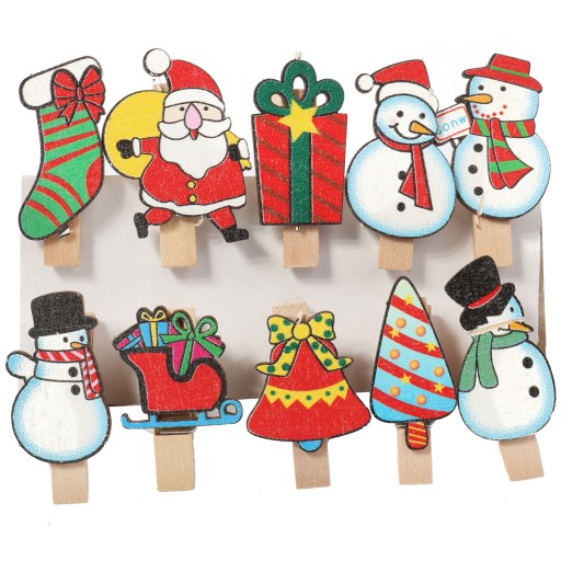 ❄️KLAMERKI DREWNIANE 10 SZT 4 CM BOŻONARODZENIOWE