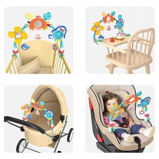Wiek: 0m+ Zabawka przykuwa uwagę i utrzymuje aktywność oraz ciekawość dziecka podczas przebywania w wózku czy foteliku.