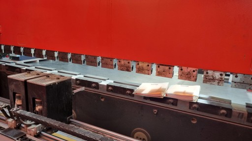 Długość gięcia: 4100 mm; Pomiędzy kolumnami: 3650 mm, Załadunek: 300 mm, skok 200 mm; Nacisk: 170 t.