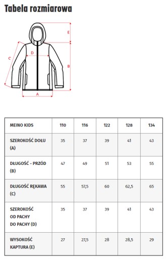 * Kurtka z membraną: wodoodporność 10 000 mm H²O/m², oddychalność 1000 g H²O/m²